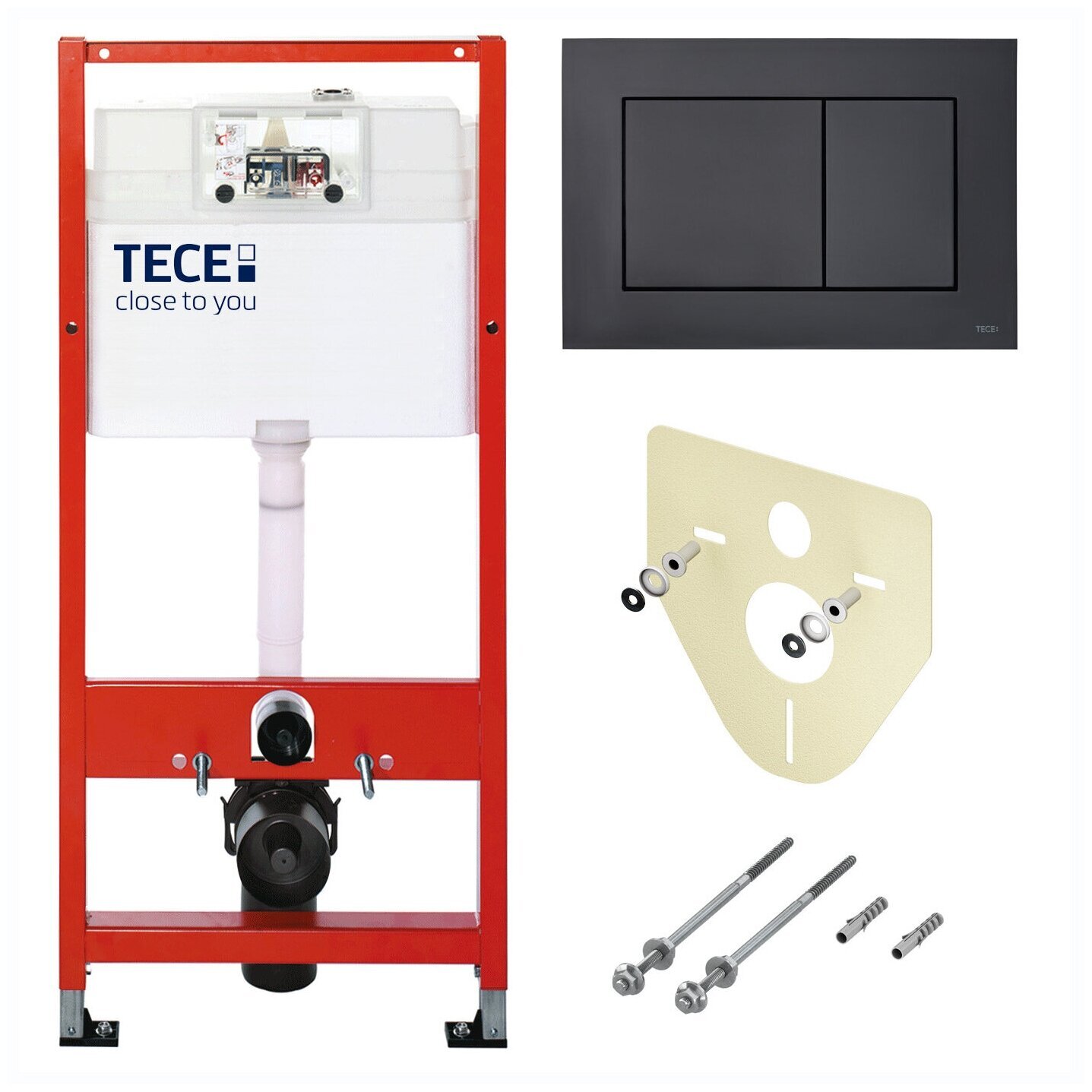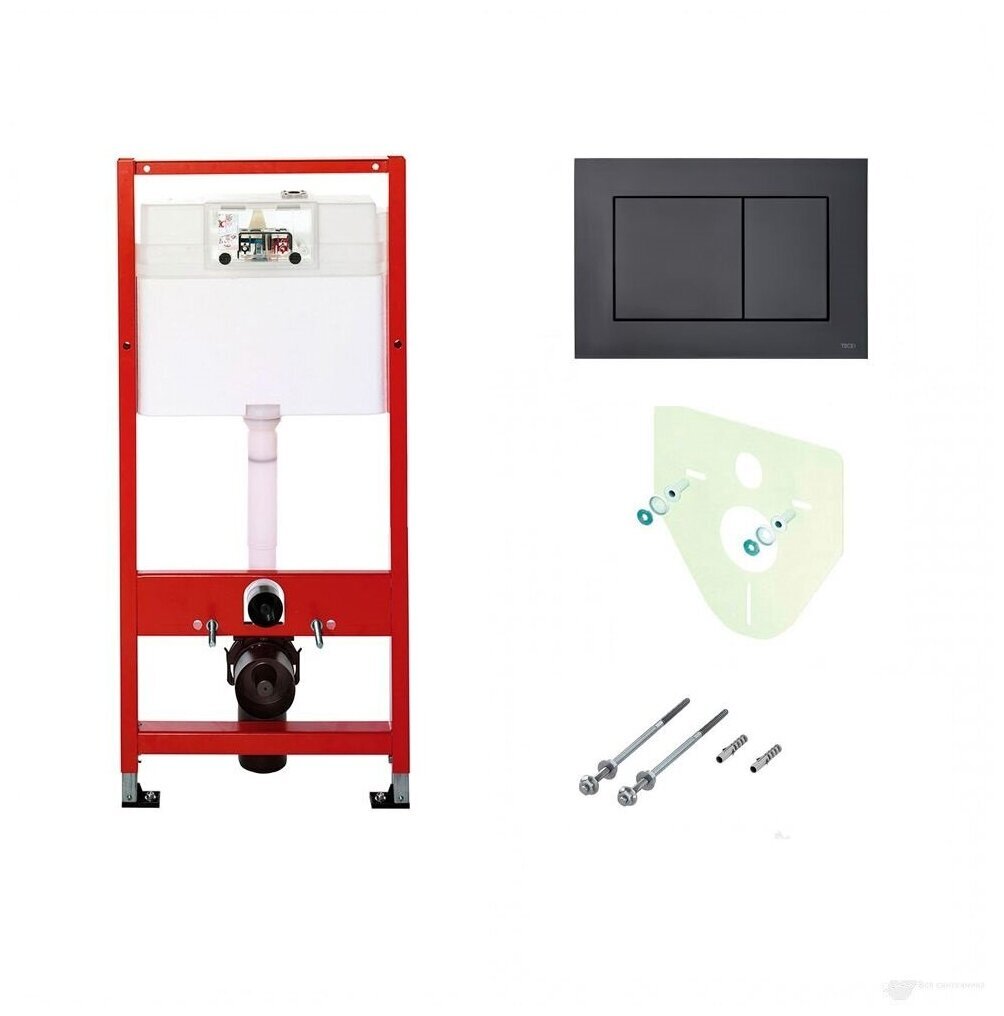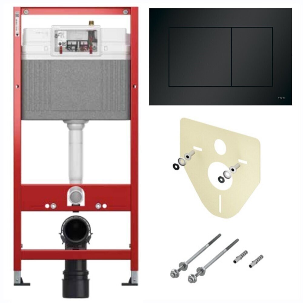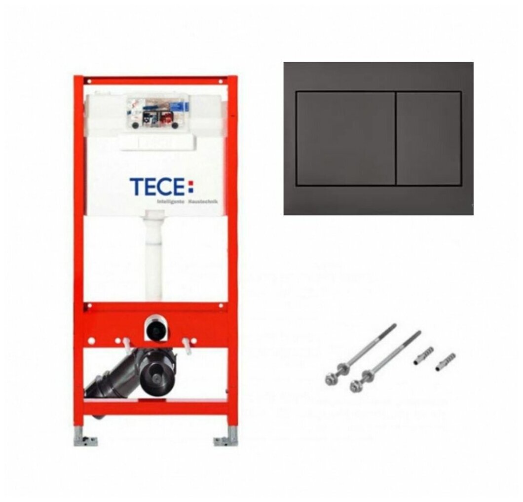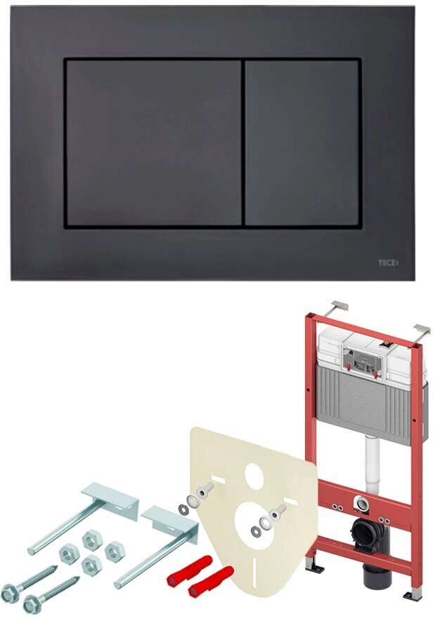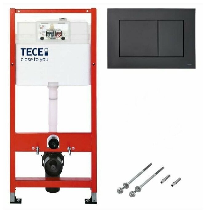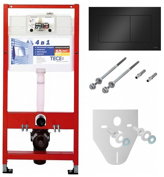 BASE 2.0 Комплект инсталляции 4 в 1 с панелью смыва ТЕСЕnow, цвет черный матовый, для установки подвесного унитазаКОМПЛЕКТАЦИЯ:- Застенный модуль TECEbase - размер застенного модуля: 112 x 50 x 16 см- Панель смыва (кнопка смыва) TECEnow, цвет — черный матовый.- Крепеж для монтажа модуля к стене.- Звукоизолирующая прокладка для унитаза.Обновление застенного модуля TECEbase 2.0 2021г.- Предварительно смонтированный заливной клапан с 3-ходовым угловым вентилем- Бачок не нужно открывать во время строительных работ- Улучшенная панель защиты от брызг- Быстрая сборка easy fit для панелей смыва- Можно модернизировать для унитазов с функцией биде- Оптимизированный держатель канализационного отводаУниверсальная совместимость!Все панели смыва TECE совместимы с универсальным бачком TECE — независимо от серии и года выпуска!Мы также гарантируем это для бачков и панелей смыва с системой easy fit и без нее.Максимальная надежность, максимальное удобство!Бачок TECEbase поставляется полностью собранным и запечатанным, и его открывают только на завершающем этапе установки. Цельный грязеотражатель панели защиты от брызг препятствует проникновению грязи, зажимные направляющие упрощают открывание и закрывание панели защиты от брызг. Еще одно полезное новшество: направляющие для толкателей и увеличенный кабельный ввод для электроники облегчают монтаж механических и электронных панелей смыва.Быстрое подключение — нет необходимости в герметизацииУ новой арматуры для соединения бачка с водопроводом наружная резьба 1/2", и она совместима с адаптером быстрого соединения. Затраты времени на герметизацию? Больше их нет.Застенный модуль TECEbase полностью готов к монтажу и установке повесного унитаза. Все необходимое дополнительное оборудование входит в комплект TECEbase kit. Модуль комплектуется бачком для воды объемом 10 литров. Конструкция сливного клапана позволяет регулировать большой объем слива - от 4,5 до 9 литров. Объем малого смыва составляет 3 литра. Материал бачка и технология его изготовления обеспечивает ударопрочность и стойкость к низким температурам.Доступ к содержимому бачка производится через отверстие для панели смыва, при этом все элементы внутренней конструкции легко извлекаются и обслуживаются.Использование подвесного унитаза вместо стандартного напольного экономит пространство в туалетной комнате и значительно упрощает процесс уборки помешения.Модуль TECEbase выдерживает нагрузку до 400 кг, что обусловлено конструкцией, надежностью используемых материалов и постоянным контролем качества.