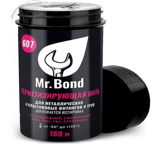 Герметизирующая нить Mr.Bond 607 состоит из полимерных микронитей, пропитанных герметизирующим составом, позволяющих выполнить юстировку перед эксплуатацией и обеспечить абсолютную герметичность соединения.